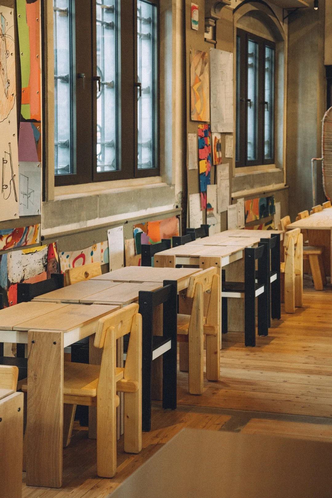 For the restaurant, our tables in natural wood and white finishes provide a calm and welcoming foundation for dining. These are complemented by WD01 chairs and stools in contrasting tones, ensuring continuity between seating and surfaces across the space.